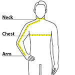 | Neck | 14 1/2 - 15 | 15 - 15 1/2 | 15 1/2 - 16 | 16 - 16 1/2 | 16 1/2 - 17 | 17 - 17 1/2 | 17 1/2 - 18 | 18 - 18 1/2 |