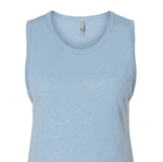 Augusta Ladies Triblend Tank. 3.8 ounce, 50% polyester/25% cotton/25% rayon tri-blend knit. Ladies' fit. Fits loose to body. Tear away label. Scoop neck. Racerback with keyhole. Contoured bottom