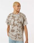 Dyenomite Adult 5.3 Ounce Summer Camp T-Shirt. Preshrunk, 100% cotton. Double-needle stitched neckline and bottom hem. Dyed with pigment dye.