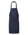 Private Label Bib Apron. 100% brushed filament polyester, full length with plain front. Generous cut, self-fabric neck strap. Extra long waist ties can wrap around and tie in front. 28"W x 33"H. Ships from Stone Mountain, GA.