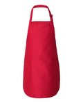Private Label Full Length Apron with Two Patch Pockets. 7.5 oz, Cotton/Poly Twill fabric, two patch pockets at waist level, binding trim. 1-inch wide neck strap with sewn-on buckle for an adjustable fit. 22"W x 30"H.
